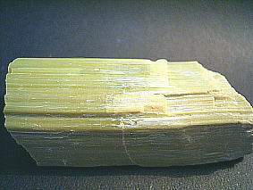 アンチゴライト カナダ産 ←5.3cm→ 蛇紋石グループを構成する3つの鉱物の1つ 見事な繊維状なのと、なんとも言えない色 (竹色・・というかその・・あ゛う〜形容が・・・(^_^;) が大のお気に入り^_^ ちなみに産地は、グロッシュラーで有名な ジェフリー鉱山です 自然の不思議を目の当たりにできるんで こういう「石らしくない石」も大好きっす^_^