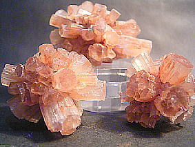 アラゴナイト モロッコ産 左 ←3.3〜4.5cm→ 右 ←4.5cm→ こちらも超定番標本(笑) けれど、やっぱりこの独特の形は魅力的っす 左の写真は、可愛いのでまとめて撮ろうとして、遠近感が出ず失敗・・(^_^; んでも開き直ってアップするんすが(笑) でもって右のは、どの結晶もほぼ均等につきだしてて ミラーボールというか、謎の宇宙船というか・・・(笑) とにかく自然の造形力に感謝っす〜